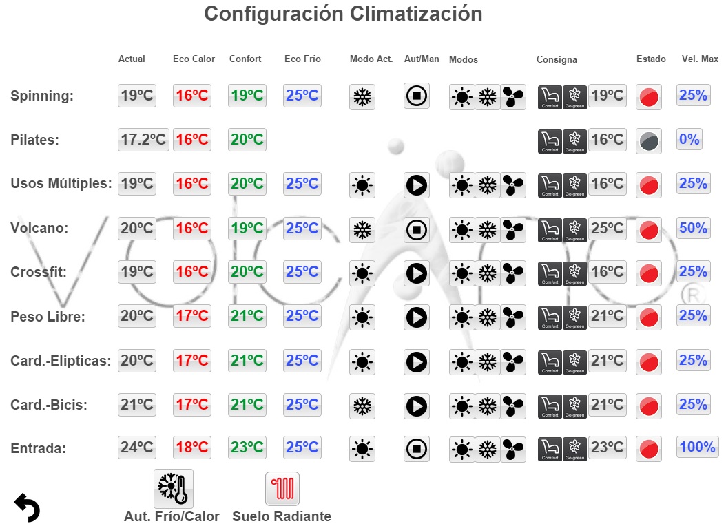 Escenarios personalizados específicos para cada sala y cada actividad física.