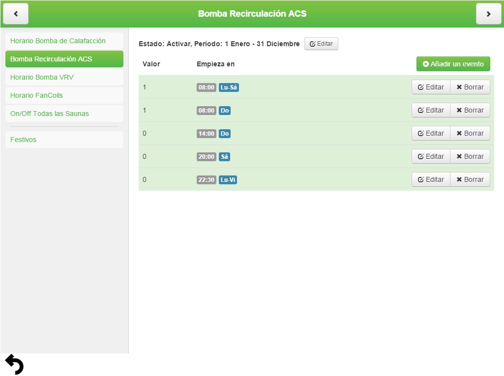 Visualizción y control del A.C.S (Agua Caliente Sanitaria)